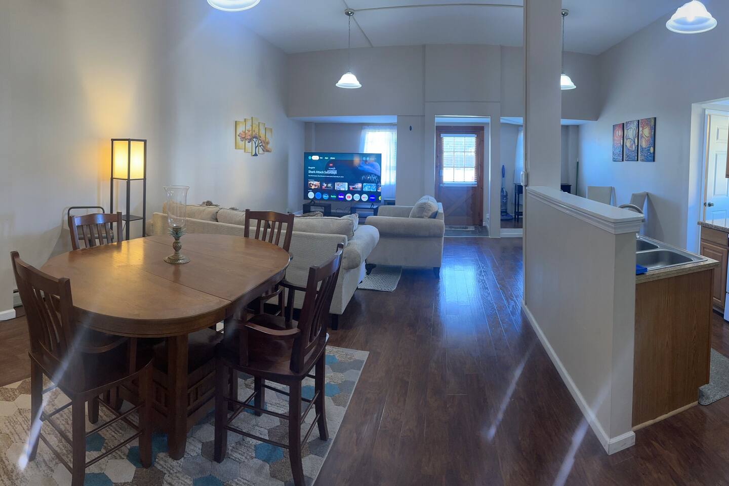 ****May 30 to August 22, 2026- Just add one guest to get the set rate of $195. ***** There is a $100 Pet Fee per stay Munson Manor V has an open floor plan w/ living, dining and kitchen areas in a very spacious room with high ceilings. There are 2 separate bedrooms and 1 bath off the main area. There are hardwood floors and tile throughout. The washer and dryer are located in the basement.