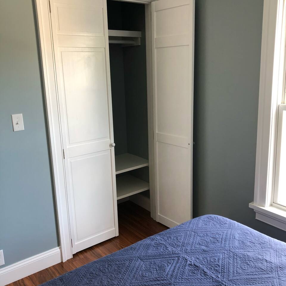 1 parking spot for both apartments but we have plenty of street parking. Also, the laundry room is shared with the first floor apartment.